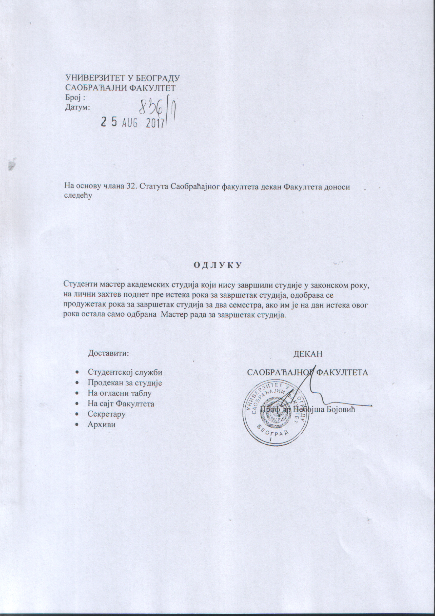 Obaveštenje za studente master akademskih studija - koji nisu završili u roku Studenti master akademskih studija koji nisu završili studije u zakonskom roku... pogledajte odluku